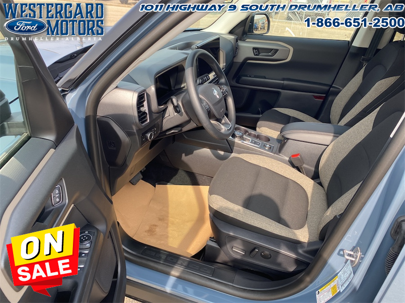 Our Bronco Sport’s trim level is Big Bend. This Bronco Big Bend steps things up with heated cloth front seats that feature power lumbar adjustment, along with SiriusXM streaming radio and exclusive aluminum wheels. Also standard include voice-activated automatic air conditioning, 13.2-inch SYNC 4 powered infotainment screen with Apple CarPlay and Android Auto, smart charging USB type-A and type-C ports, 4G LTE mobile hotspot internet access, proximity keyless entry with remote start, and a robust terrain management system that features the trademark Go Over All Terrain (G.O.A.T.) driving modes. Additional features include blind spot detection, rear cross traffic alert and pre-collision assist with automatic emergency braking, lane keeping assist, lane departure warning, forward collision alert, driver monitoring alert, a rear-view camera, and so much more. This vehicle has been upgraded with the following features: 18 Inch Aluminum Wheels, 200a Equipment Group.