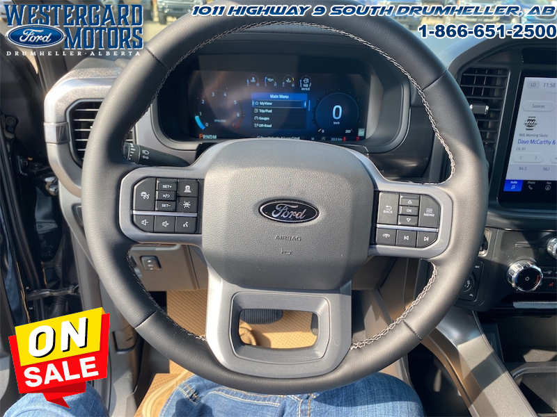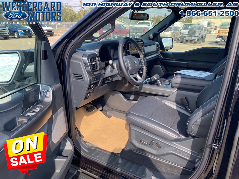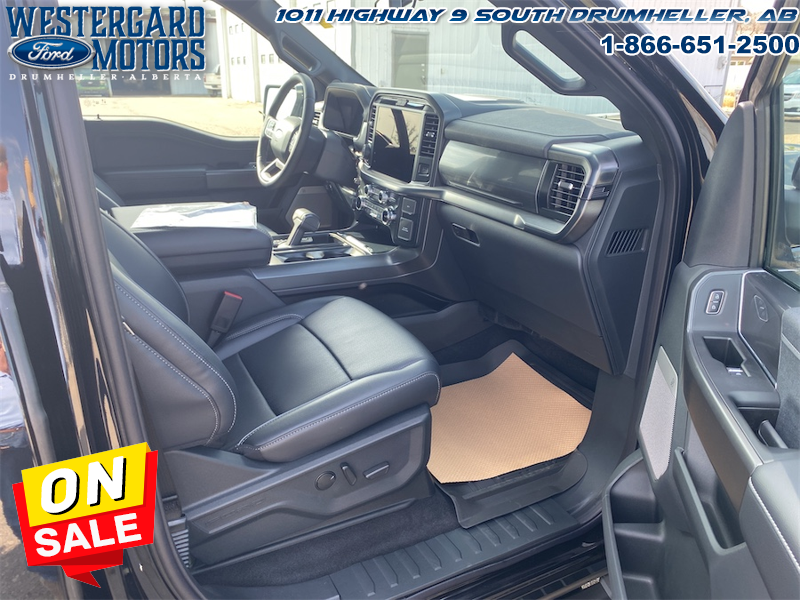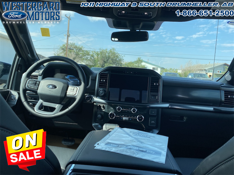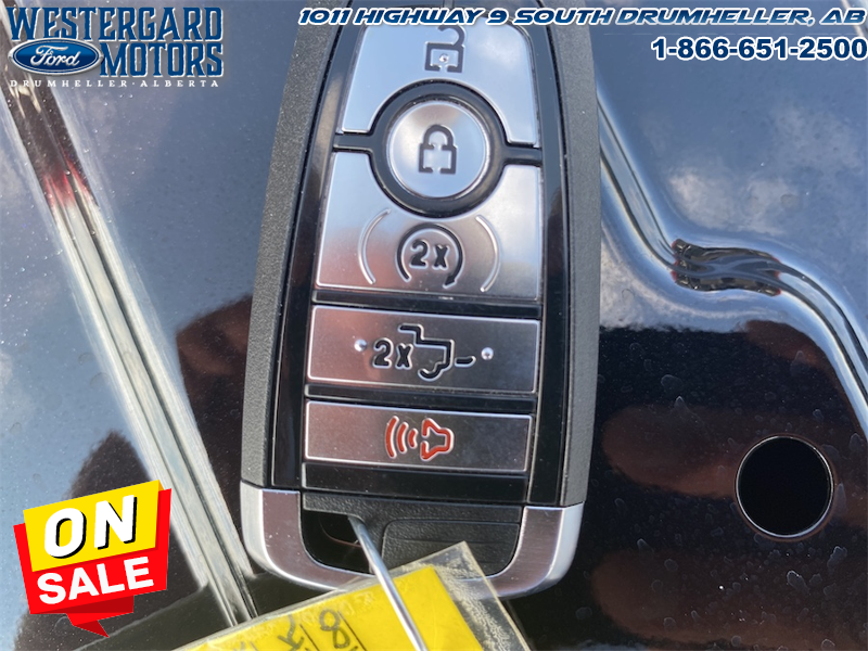 Our F-150’s trim level is Lariat. This F-150 Lariat is decked with great standard features such as premium Bang & Olufsen audio, ventilated and heated leather-trimmed seats with lumbar support, remote engine start, adaptive cruise control, FordPass 5G mobile hotspot, and a 12-inch infotainment screen powered by SYNC 4 with inbuilt navigation, Apple CarPlay and Android Auto. Safety features also include blind spot detection, lane keeping assist with lane departure warning, front and rear collision mitigation, and an aerial view camera system. This vehicle has been upgraded with the following features: Lariat Black Appearance Package, Fx4 Off-road Package, 20 Inch Aluminum Wheels, Tow Package.